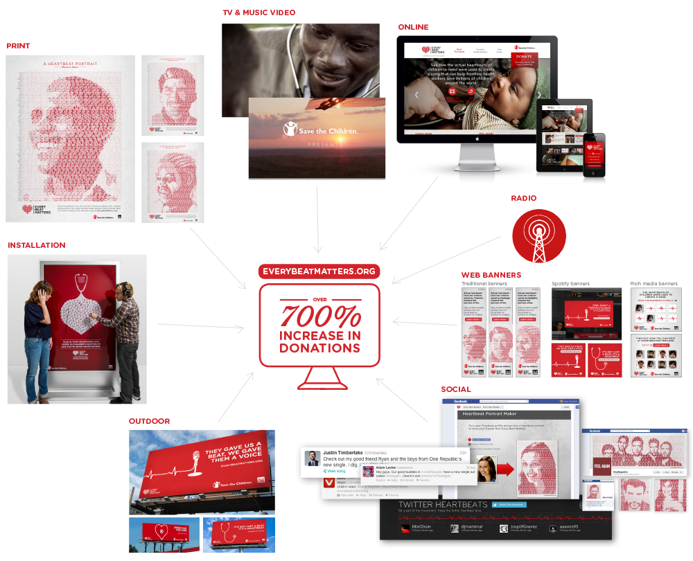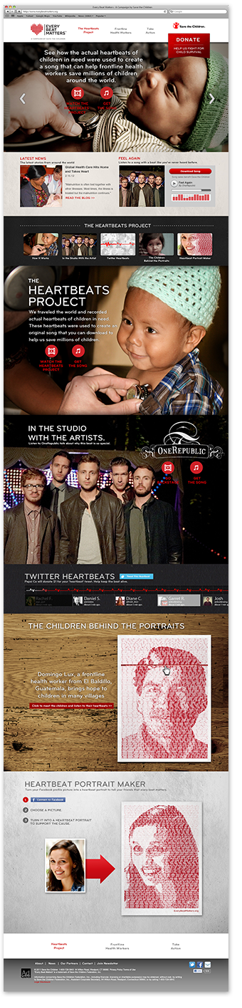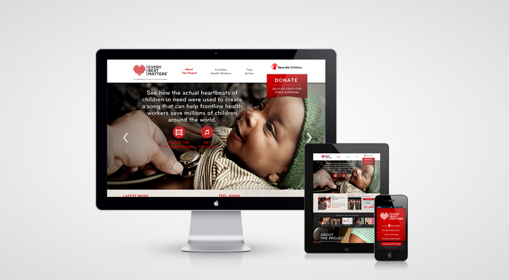 We used a large variety of media to spread the word. To stay true to our core idea that ‘every beat matters’ we used the children’s real heartbeats to create every single execution. Every piece of communication directed users to EveryBeatMatters.org, where they were able to download the song and see how the entire project came to life. What started with a child’s heartbeat became the beginning of a whole new donating platform that gives people a way to keep the hearts of 7 million children beating.
